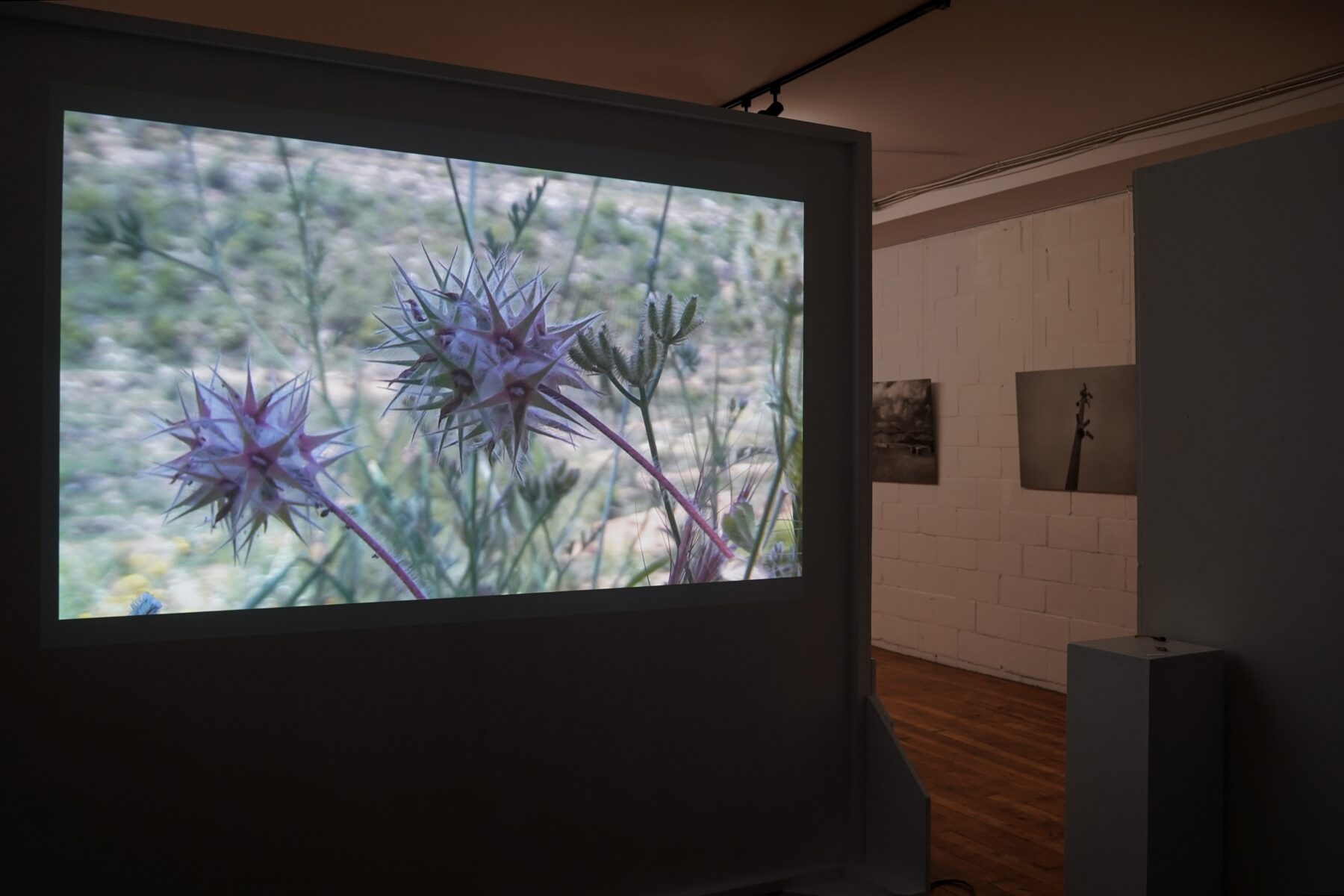 Just as drones bore down on me upon entering the gallery space, soft chirping reaches out at the end of the last room. Hidden, a couch rests facing a wide projection that fills my view. I remember the poem by Marwan Makhoul: